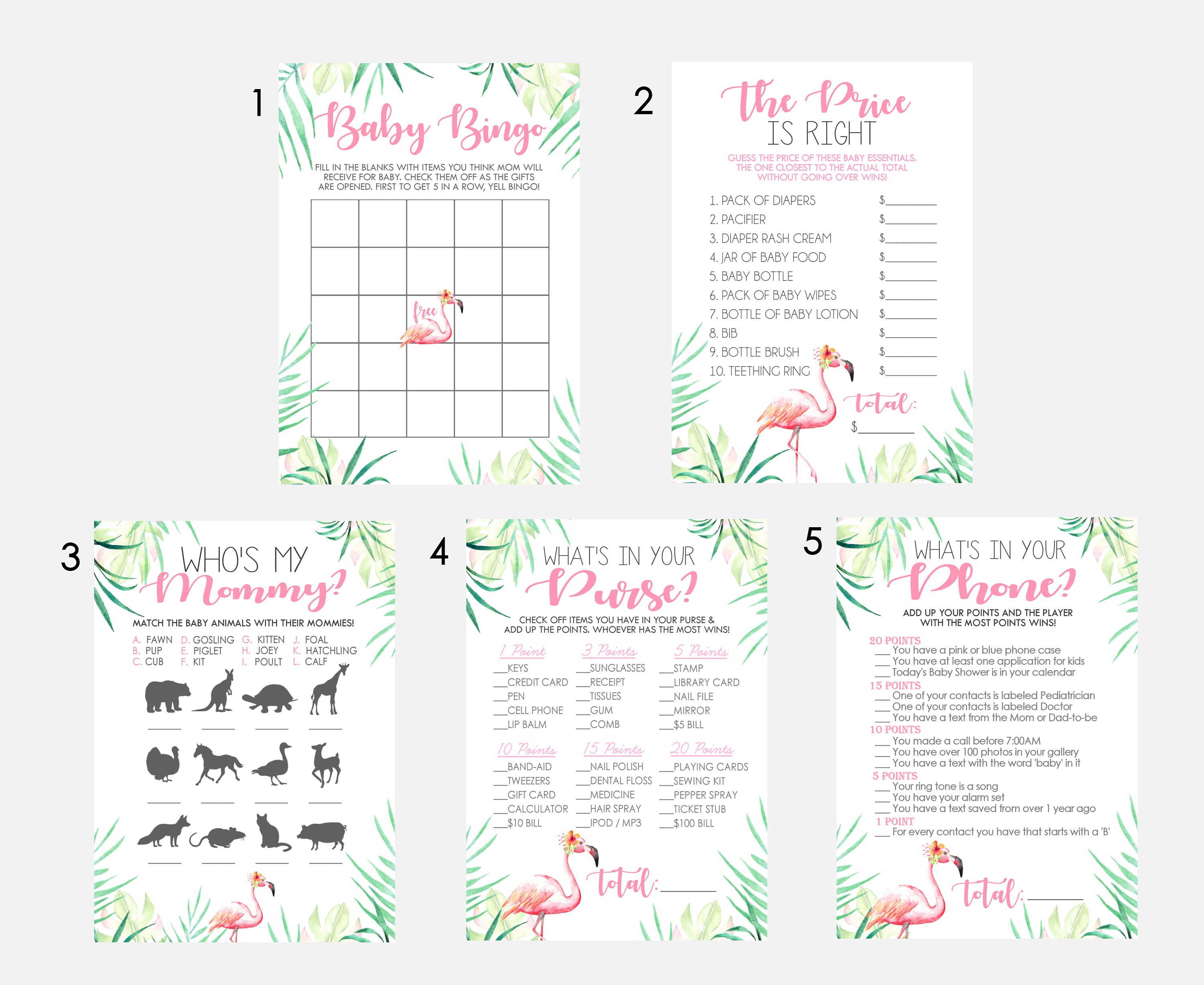 Flamingo Baby Shower Games Pick Any 5 15 Games To Choose Etsy