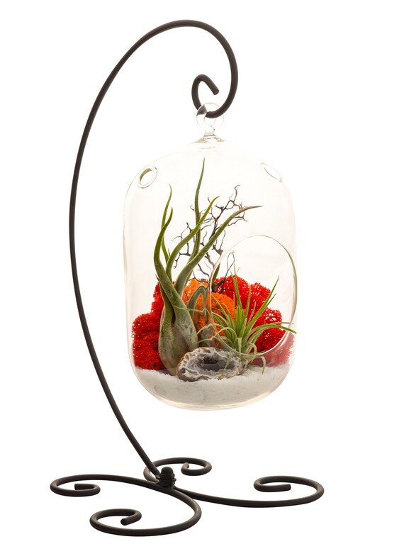 Air Plant Terrarium Kit With 8 Oval Glass Black Metal Etsy Uk
